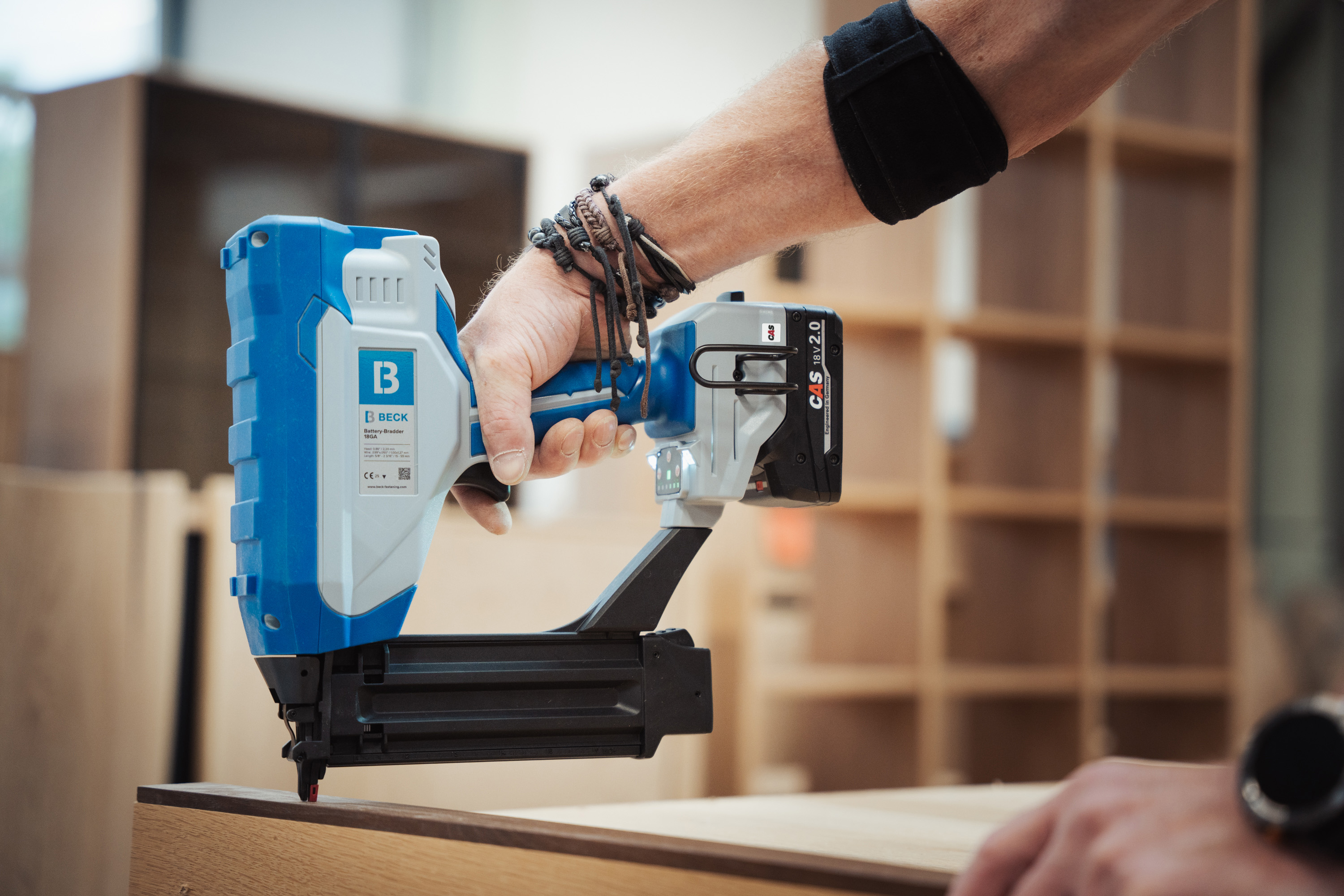 Der BECK Akku Stauchkopfnagler 55 mm bietet die volle Leistung eines Druckluftnaglers – ohne Schläuche oder Kompressor. Perfekt für präzise Arbeiten im Möbel- und Innenausbau, ermöglicht er schnelle und saubere Befestigungen mit kabelloser Bewegungsfreiheit. Die kompakte Bauform, das geringe Gewicht und die Kompatibilität mit CAS-Akkus machen ihn zum idealen Werkzeug für professionelle Handwerker, die Wert auf Präzision und Mobilität legen.
