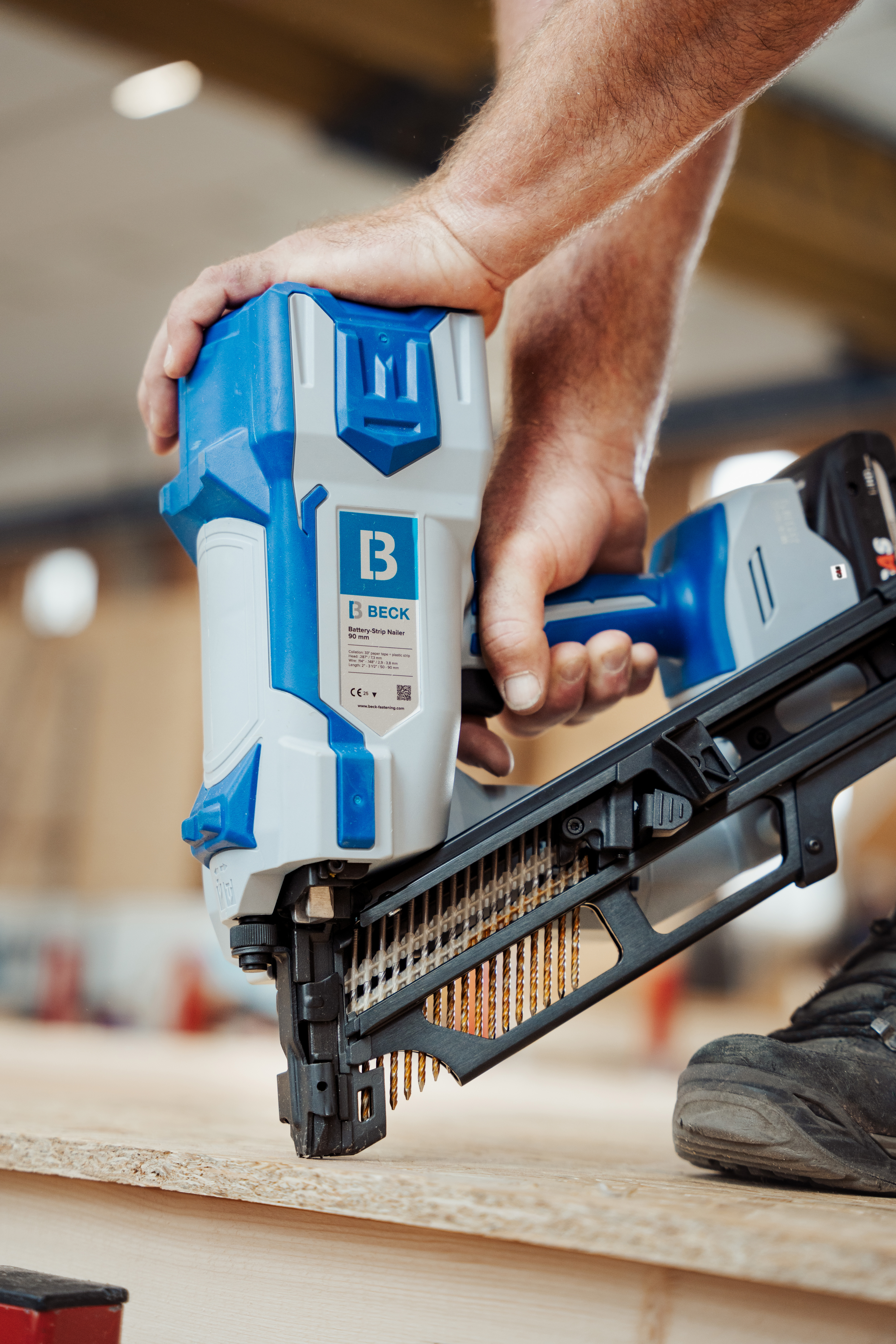 Der BECK Akku Streifennagler 33°, 90 mm vereint die volle Leistung eines Druckluftnaglers mit der Freijeit kabelloser Handgeräte - ganz ohne Schläuche oder Kompressor. Ideal für anspruchsvolle Anwendungen im Holz-und Innenausbau ermöglicht er schnelle, kraftvolle und präzise Befestigungen mit maximaler Bewegungsfreiheit. Die robuste Bauweise, hohe Schlagkraft und seine Kompatibilität mit CAS-Akkus machen Ihn zum zuverlässigen Werkzeug für professionelle Handwerker, die Wert auf Leistung, Flexibilität und Effizienz legen.